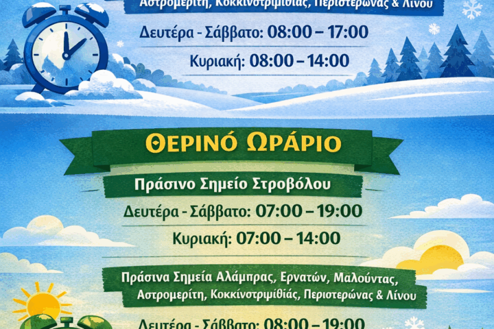 Σας ενημερώνουμε ότι τα Πράσινα Σημεία Λευκωσίας στις 14 Ιουνίου 2024 δεν θα δέχονται επισκέπτες από τις 11:00 – 17:00 μ.μ.